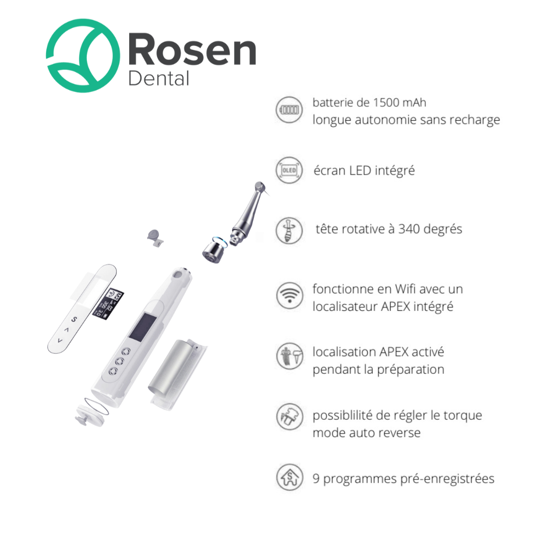 Moteur pour traitement endodontie sans fil avec Localisateur Apex intégré.